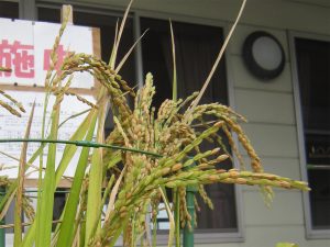 庄内町では「つや姫」の稲刈りも始まったようですが、バケツの「つや姫」は、まだ青く穂が立ったままの状態です。バケツの稲は直接お日様にさらされ、コンクリートからの照り返し等、高温の影響が大きかったのかもしれませんね。